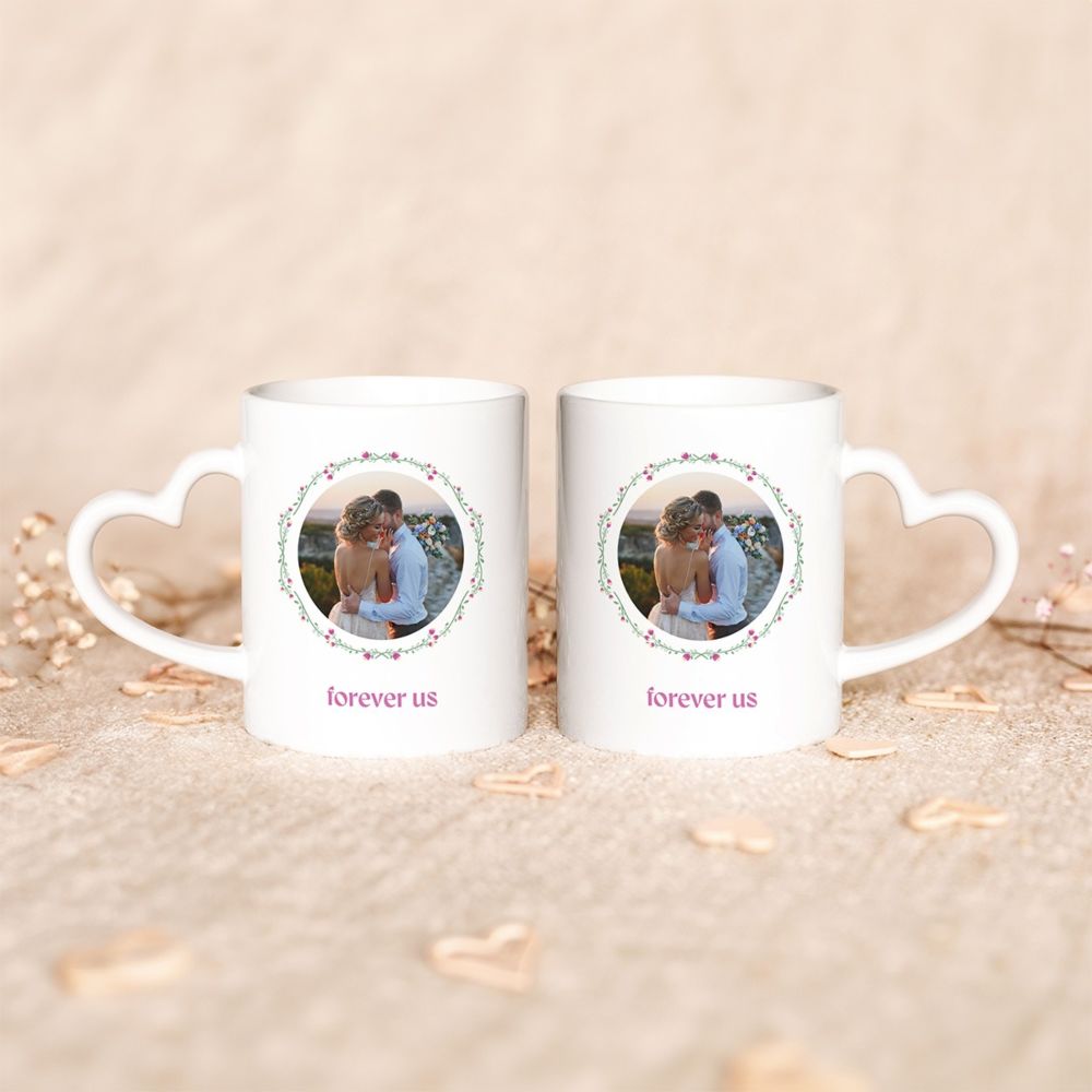 - Personalisierbare Tasse Blumenkranz mit Foto und Text